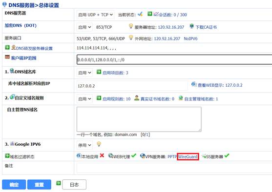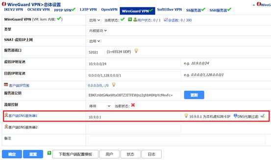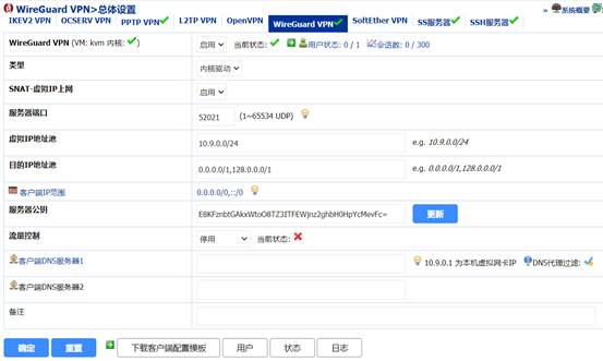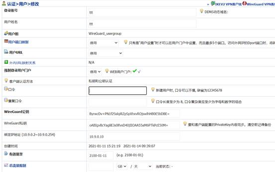 1)管理员启用WireGuard VPN,参见3.1总体设置