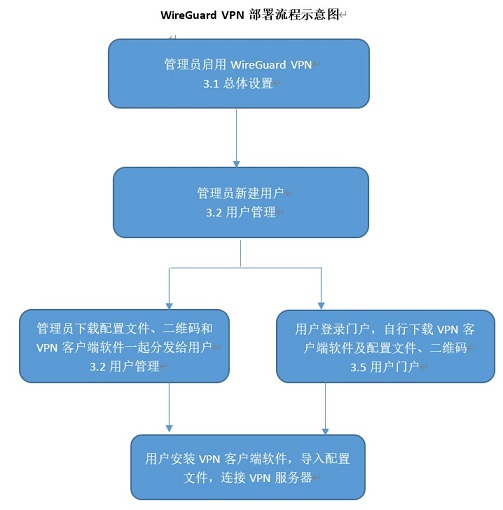 使用大地云控部署WireGuard VPN系统的流程简述如下,也可参见下图11所示。