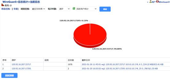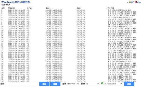 显示曾经登录过的用户状态信息,包括用户账号、远程IP、虚拟IP、上一次活动的时间、上传下载流量统计等,管理界面见下图6所示。