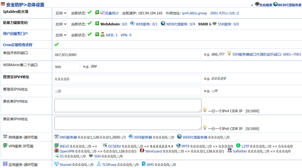 另外,还可以启用DNS、SSH、WEB代理等日志审计,以此作为真实的(非全部端口开放)蜜罐Honeypot,记录黑客在探测阶段的尝试,再将不良IP加入到IP黑名单中,如下图所示。