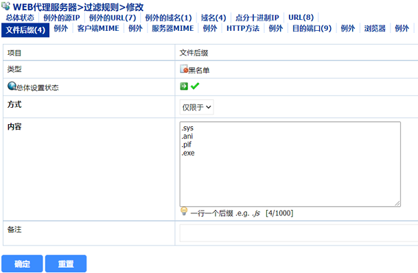 图四 过滤HTTPS数据流中的.exe后缀文件—HTTP代理服务器